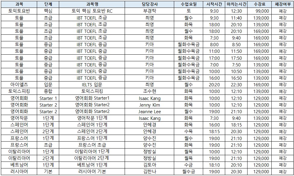 | 2025학년도 5차 외국어특강 폐강과목 공지 | |||