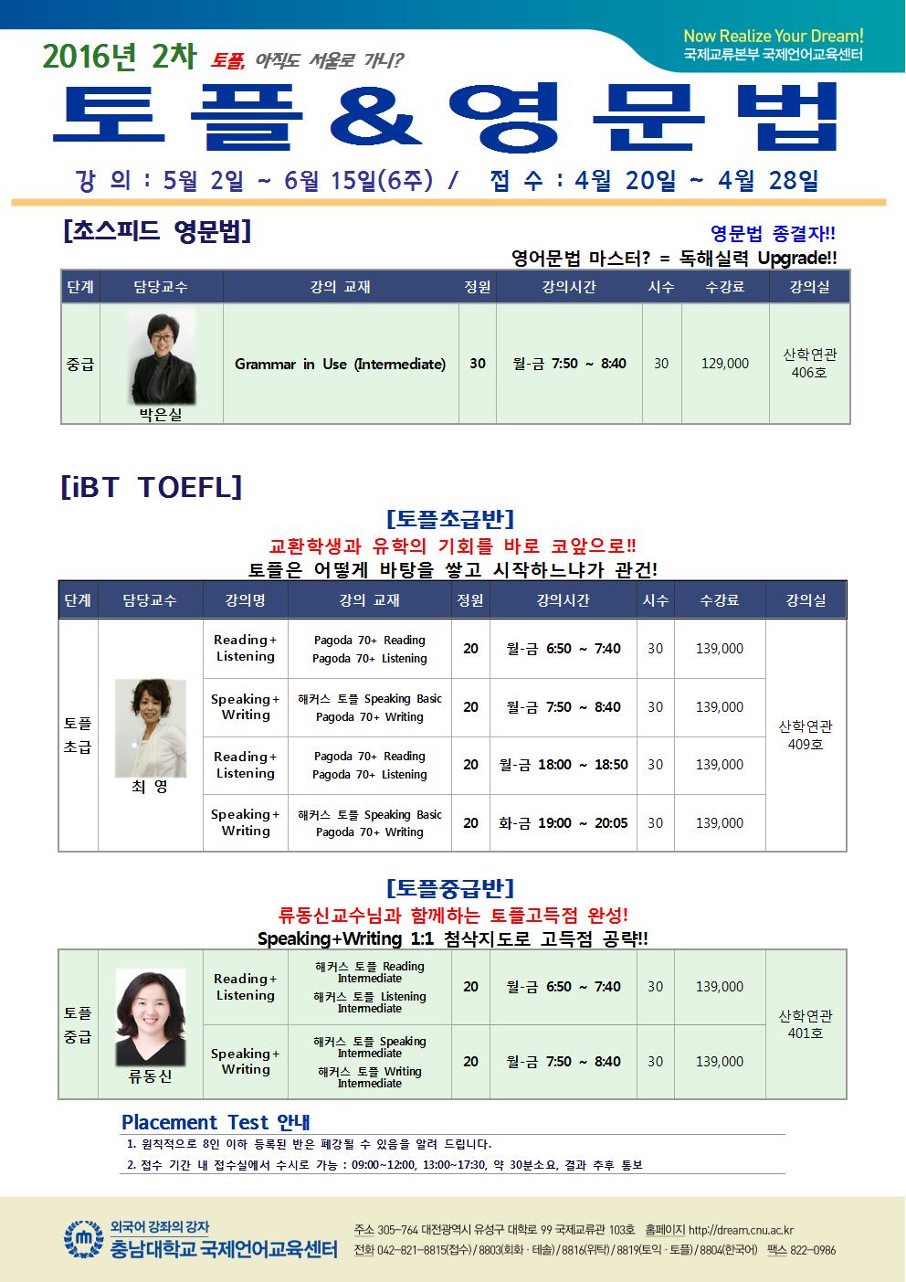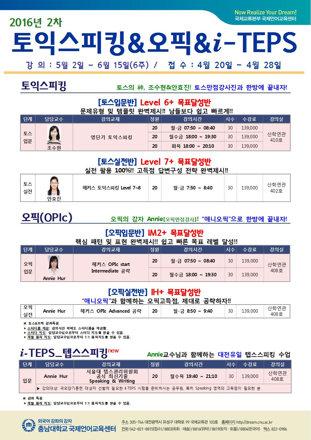 | 2016학년도 2차 외국어특강 안내[5월개강] | |||