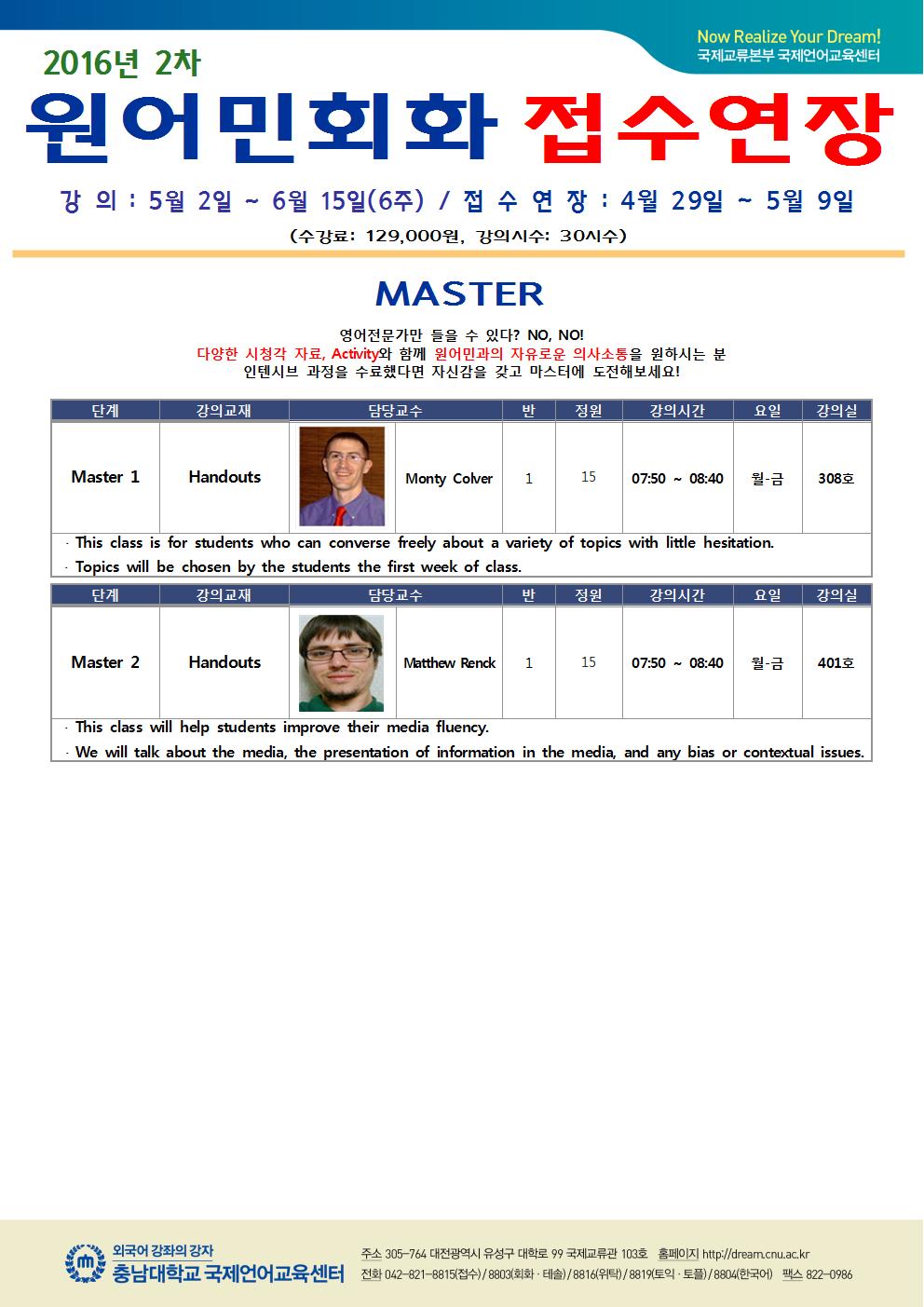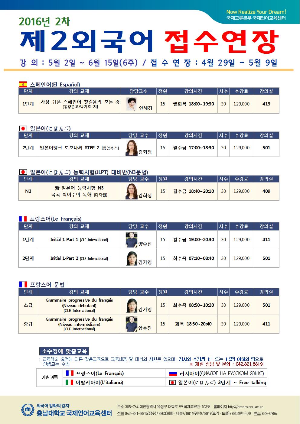 2016-2차 외국어특강 개설과목/강의실 안내