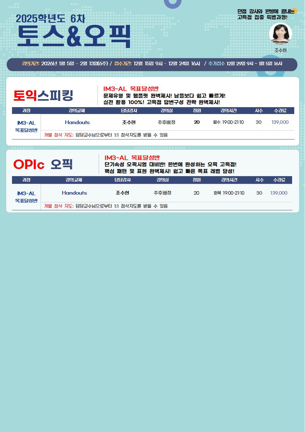 | 2025-6차 외국어특강 시간표 및 일정 안내 | |||