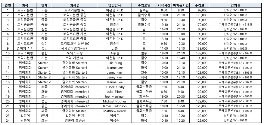 2026학년도 1차 외국어특강 강의실 안내드립니다.