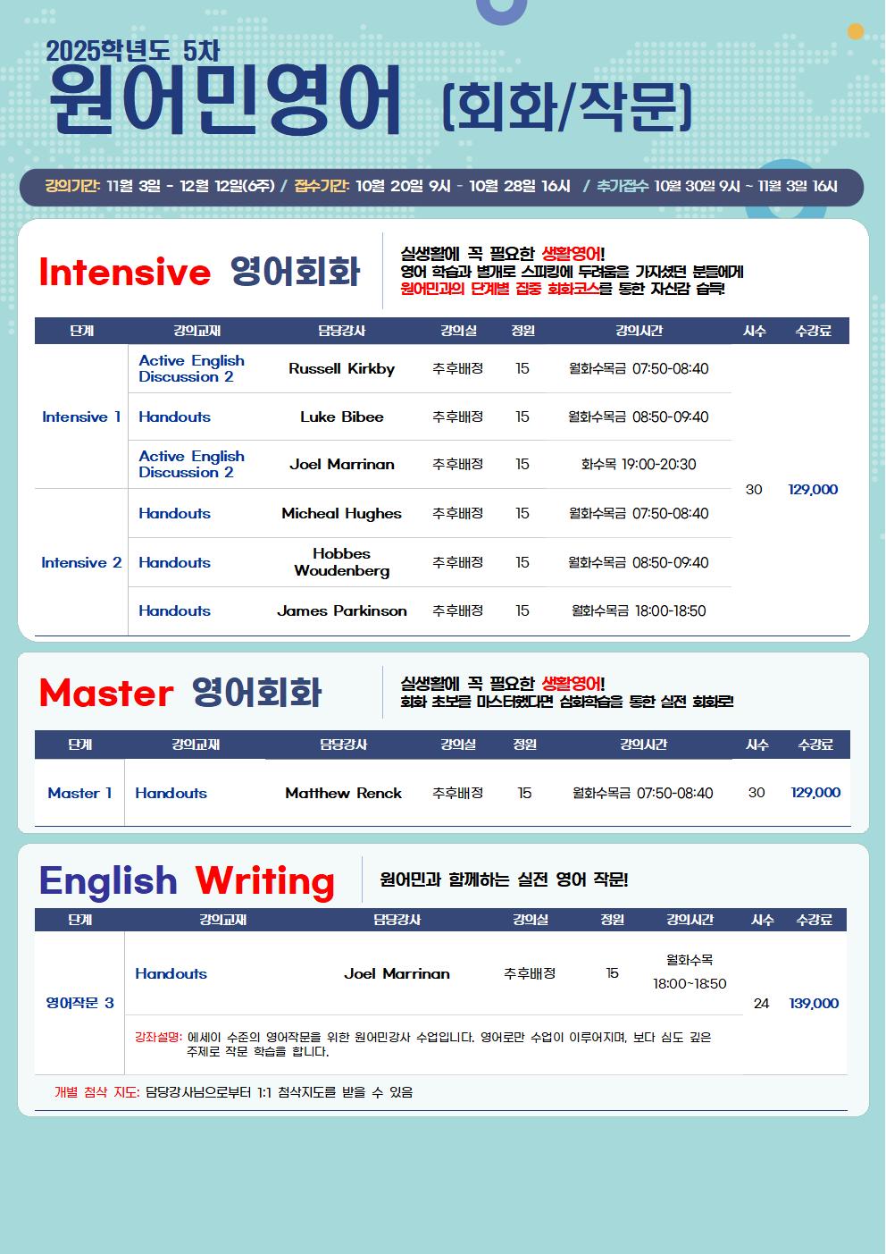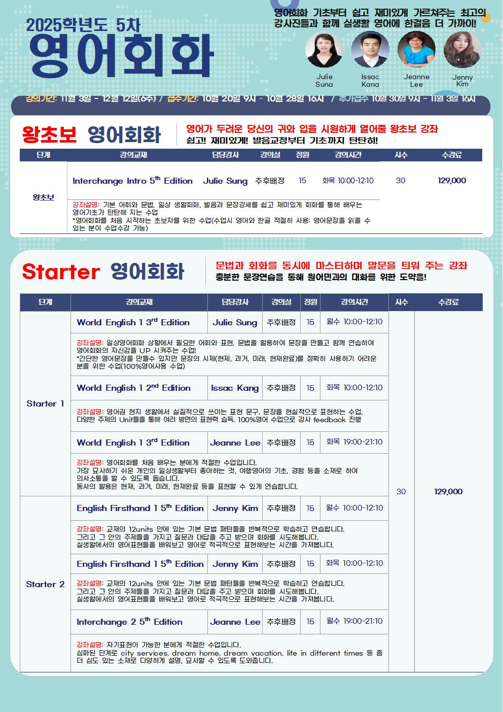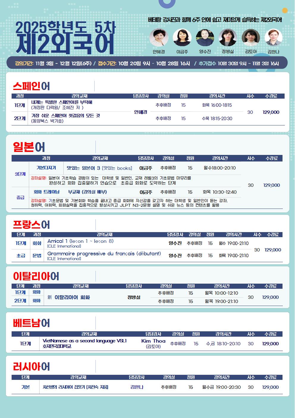 2025-5차 외국어특강 시간표 및 일정 안내 | |||