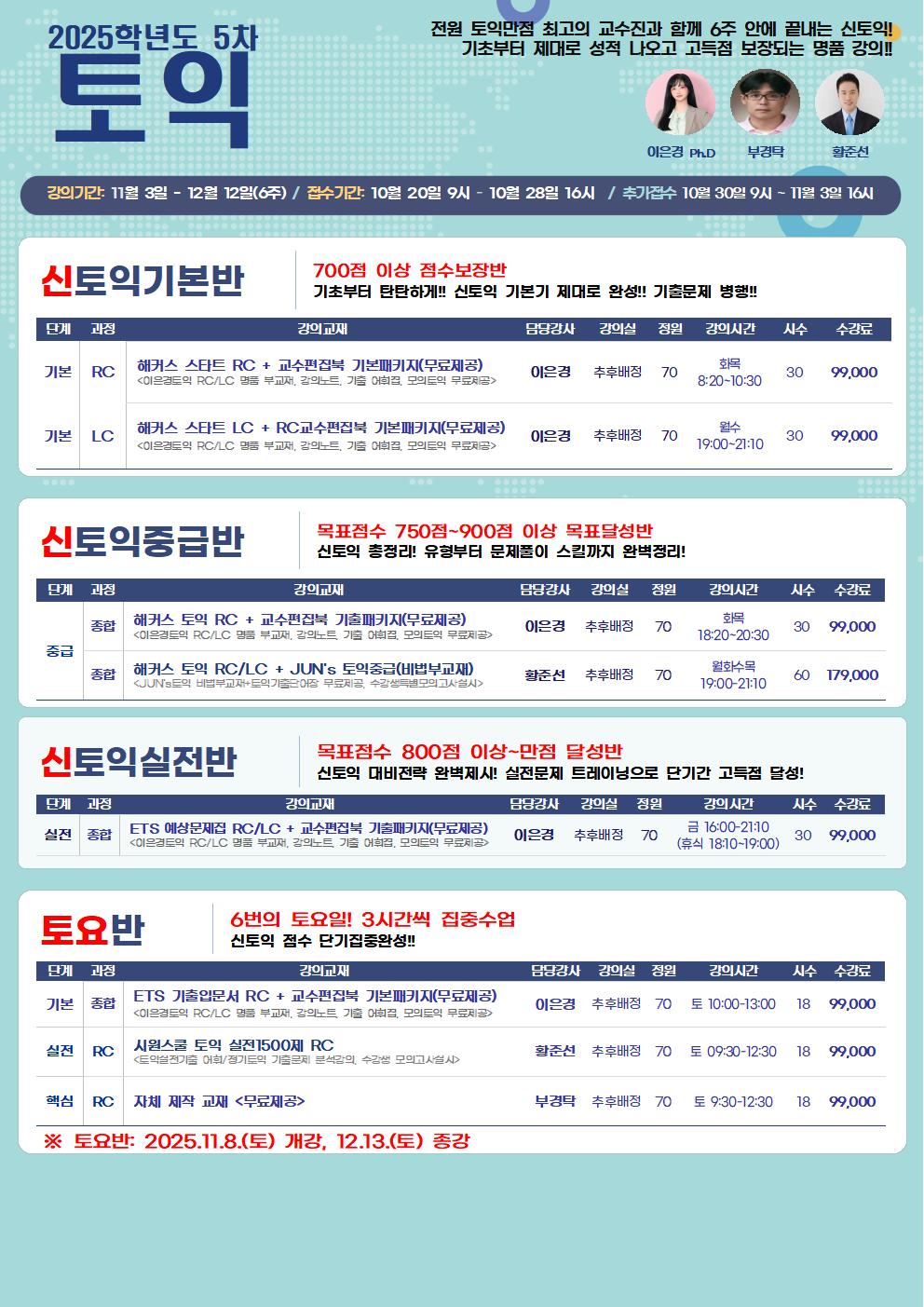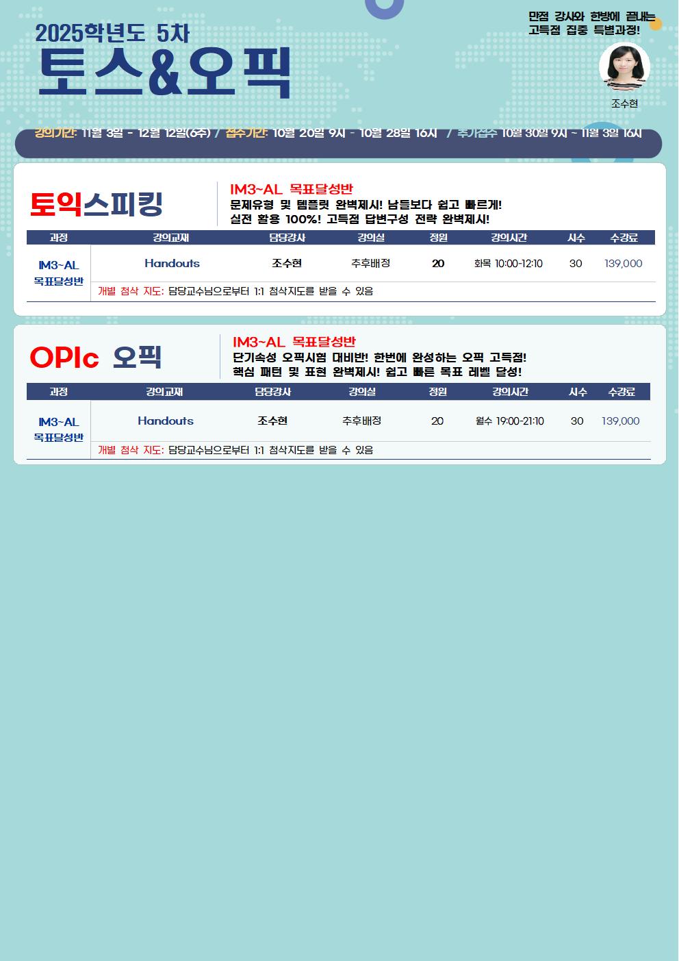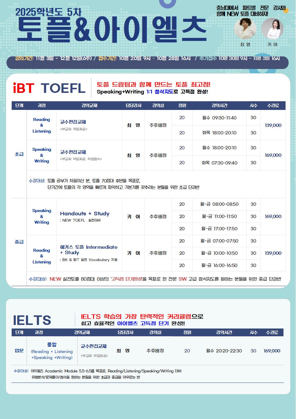 2025-5차 외국어특강 시간표 및 일정 안내 | |||
